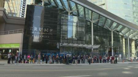 “We are here at the Trump tower to say that we don’t appreciate what he is saying,” he adds.