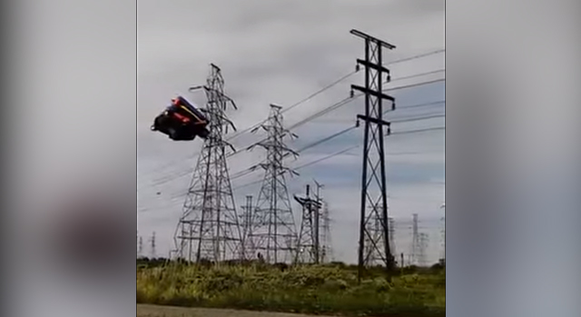 Video of the incident was captured by a nearby resident, who recorded the party toy sailing into a telephone pole, causing a bright flash and sparks.