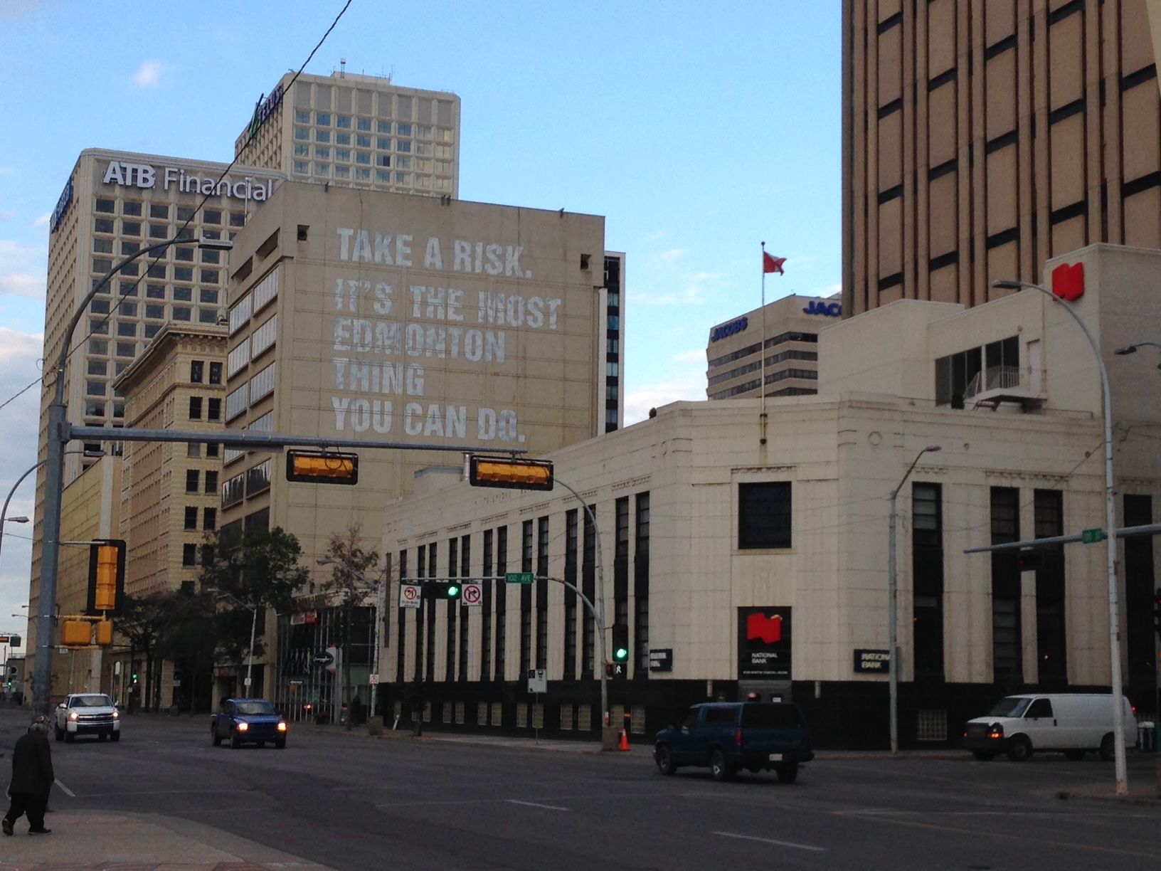 On Tuesday, a sign on the Melcor building, which read “Take a risk. It’s the most Edmonton thing you can do,” had Edmonton residents wondering who was behind the inspirational message.