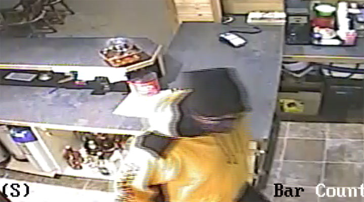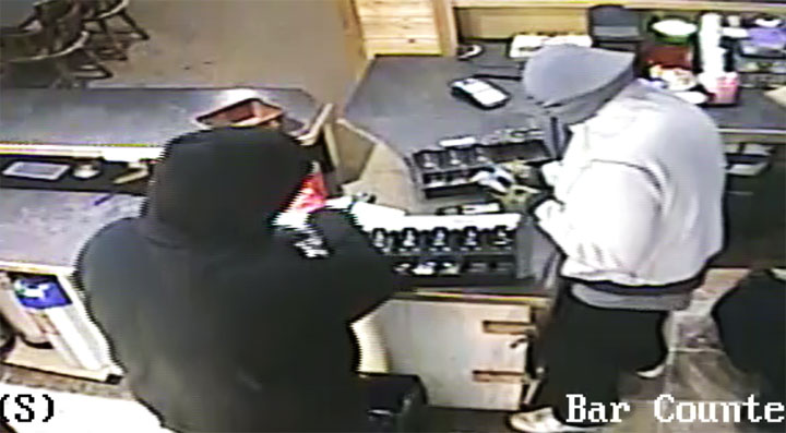 One of the suspects that entered the bar was wearing a bright yellow sweater or jacket with the word “Caterpillar” on the sleeve.