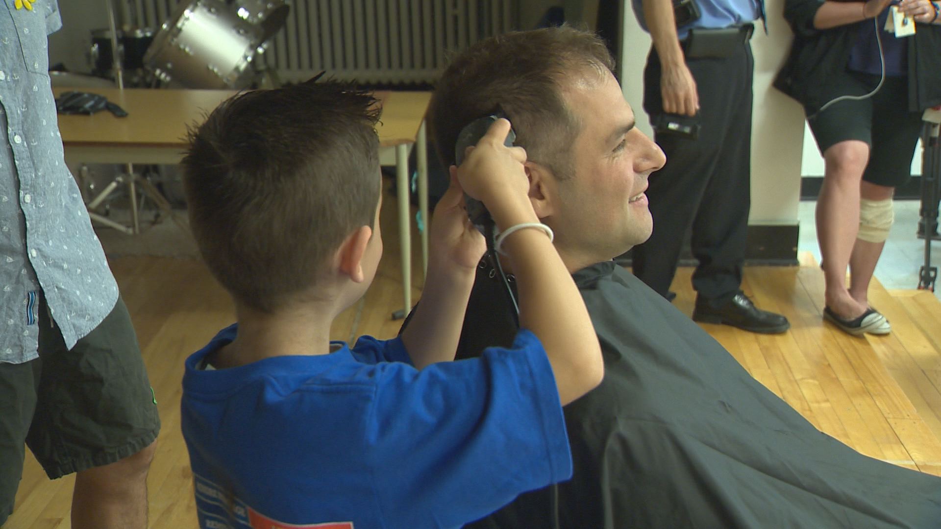 Saibil’s classmates were on hand to watch him get the big cut, including Jayden Roll – a seven-year-old leukemia survivor – and Finn Salkeld, Saibil’s best friend, who said he “looks cool now!”