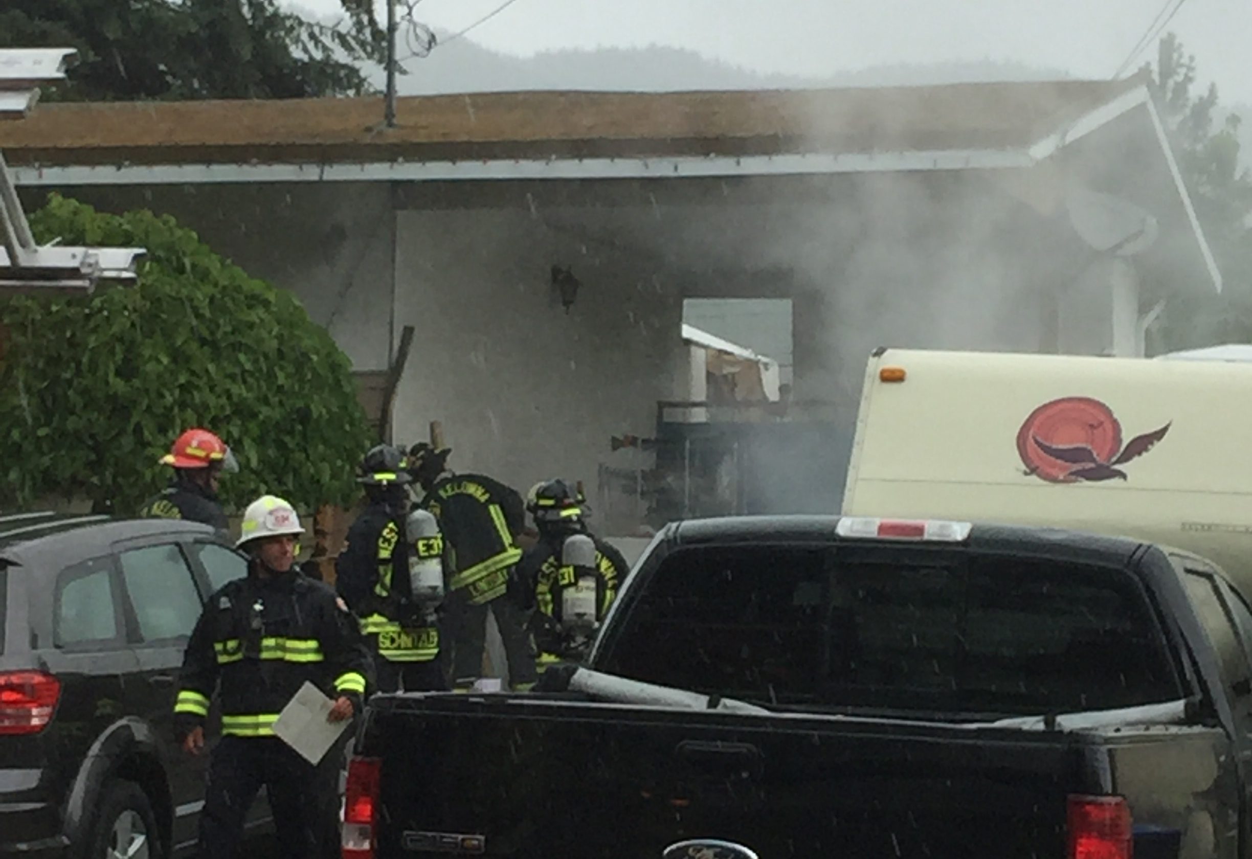 “What we found is fire behind the wall so we had hydro come out right away and turn the power off,” said assistant fire captain, Brent Watson. “Our crews, as you can see, are pulling the wall and extinguishing the fire.”
