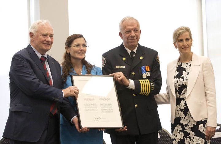 Johnston presented commendations for outstanding service to those involved in emergency relief efforts while Sophie greeted Red Cross volunteers, RCMP officers and firefighters.
