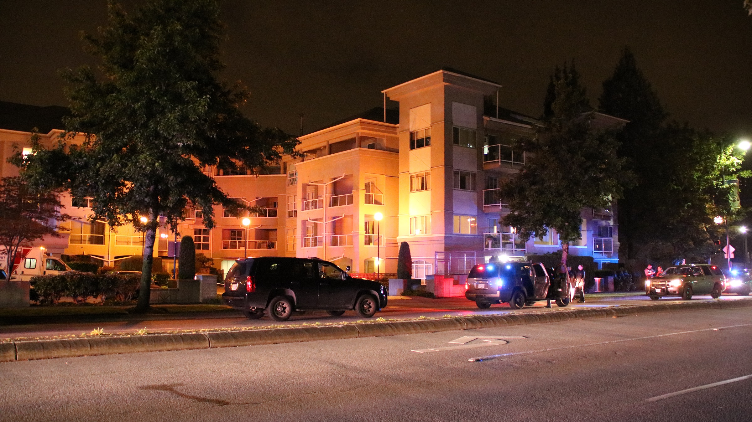 Four people were stabbed after a fight broke out at a Surrey apartment early Saturday morning.