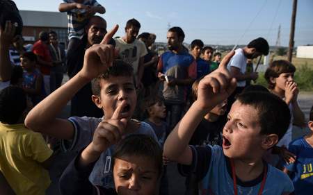The migrants, most of them Syrian, repeatedly blocked a road outside the camp in the town of Oreokastro, a suburb of Thessaloniki, Greece’s second largest city, in the afternoon and evening, shouting “We want Salam!” – a reference to the head of the NGO providing the food. They finally retreated when police promised that the NGO would be granted access to the camp.