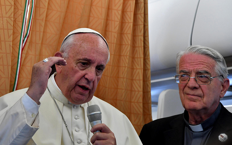 Francis responded with a variation of his famous “Who am I to judge?” comment and a repetition of church teaching that gays must not be discriminated against but treated with respect.