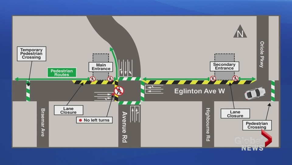 Once the fence is up, there will be a dead end. The north sidewalk will end about a block east of Avenue Road where a station entrance is being constructed.