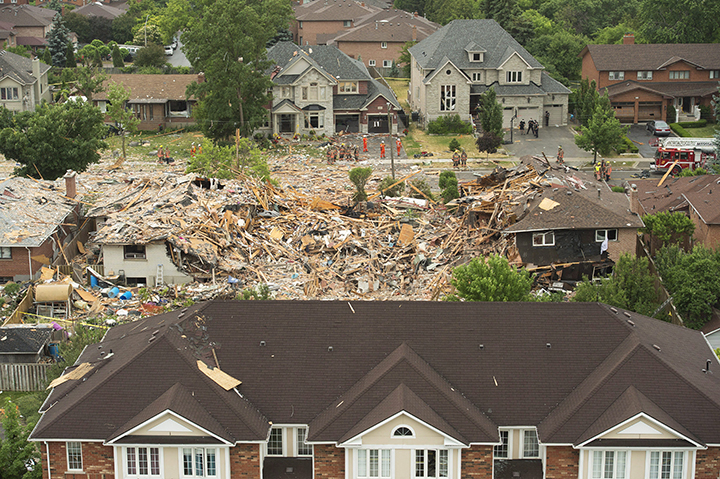 Tim Beckett, fire chief for the City of Mississauga, said the damage to neighbouring houses ranged from very light to extreme and there had been several injuries reported.