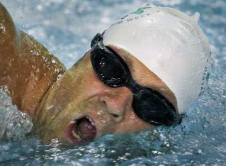 He swims eight to nine times a week for anywhere from one to eight hours each time.