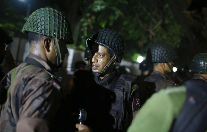 A huge contingent of security forces, wearing flak jackets and helmets, cordoned off the area around the Holey Artisan Bakery in Dhaka’s Gulshan area. A local resident Lutful Amin told the AP he heard several explosions, the last of which went off around 10:45 p.m., about 90 minutes after the initial attack.