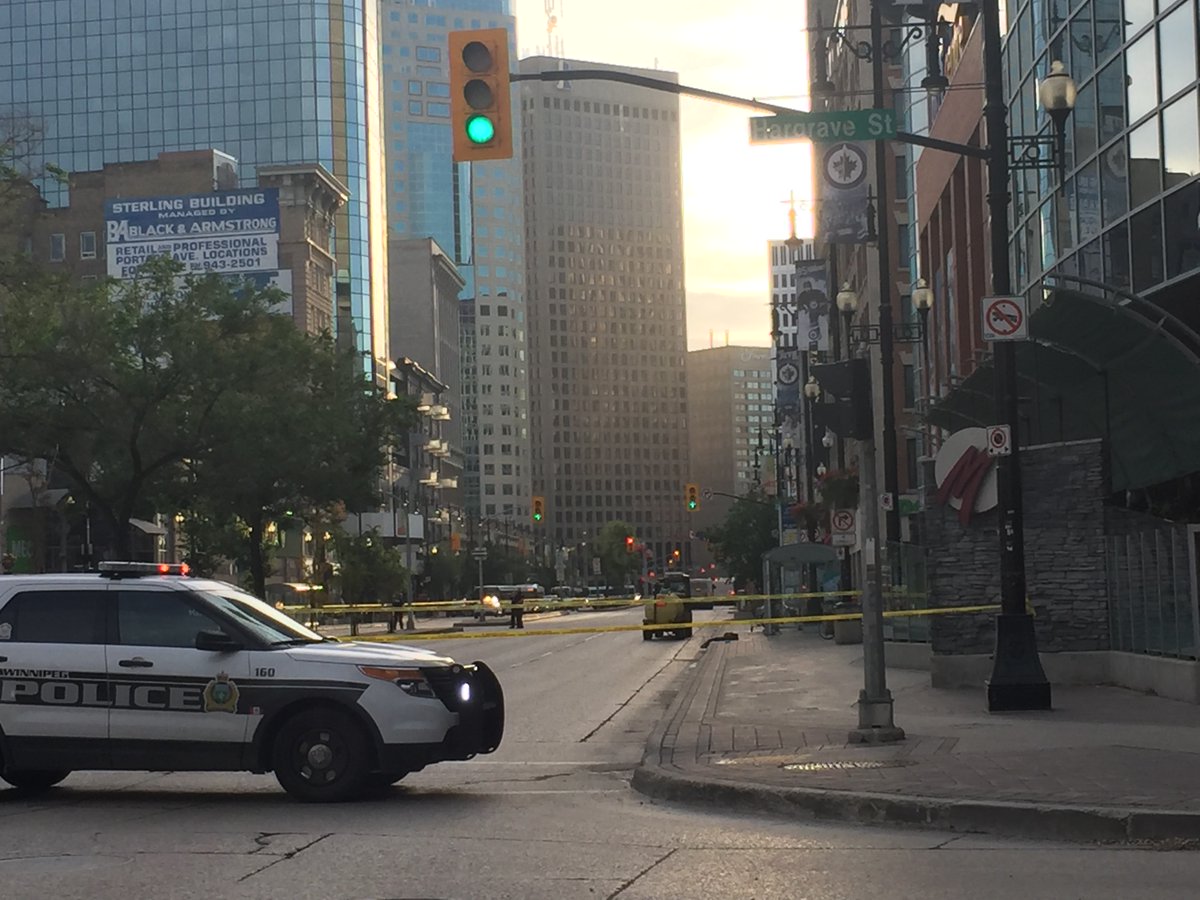 Police tape was blocking northbound Donald Street to Ellice Avenue, westbound Portage Avenue at Smith Street and eastbound Portage at Hargrave Street. Pedestrians and drivers were unable to access the area for hours.