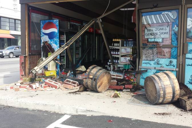 The strange series of events went down just before 11 a.m. April 23, 2015. Police say a man driving a Ford SUV failed to stop at a red light at the intersection of Cedar Avenue and Pandosy Street. He then hit the cab, turned into the parking lot of Lakeview Market and smashed his vehicle through the front window. The man then drove away but police made an arrest shortly after.
