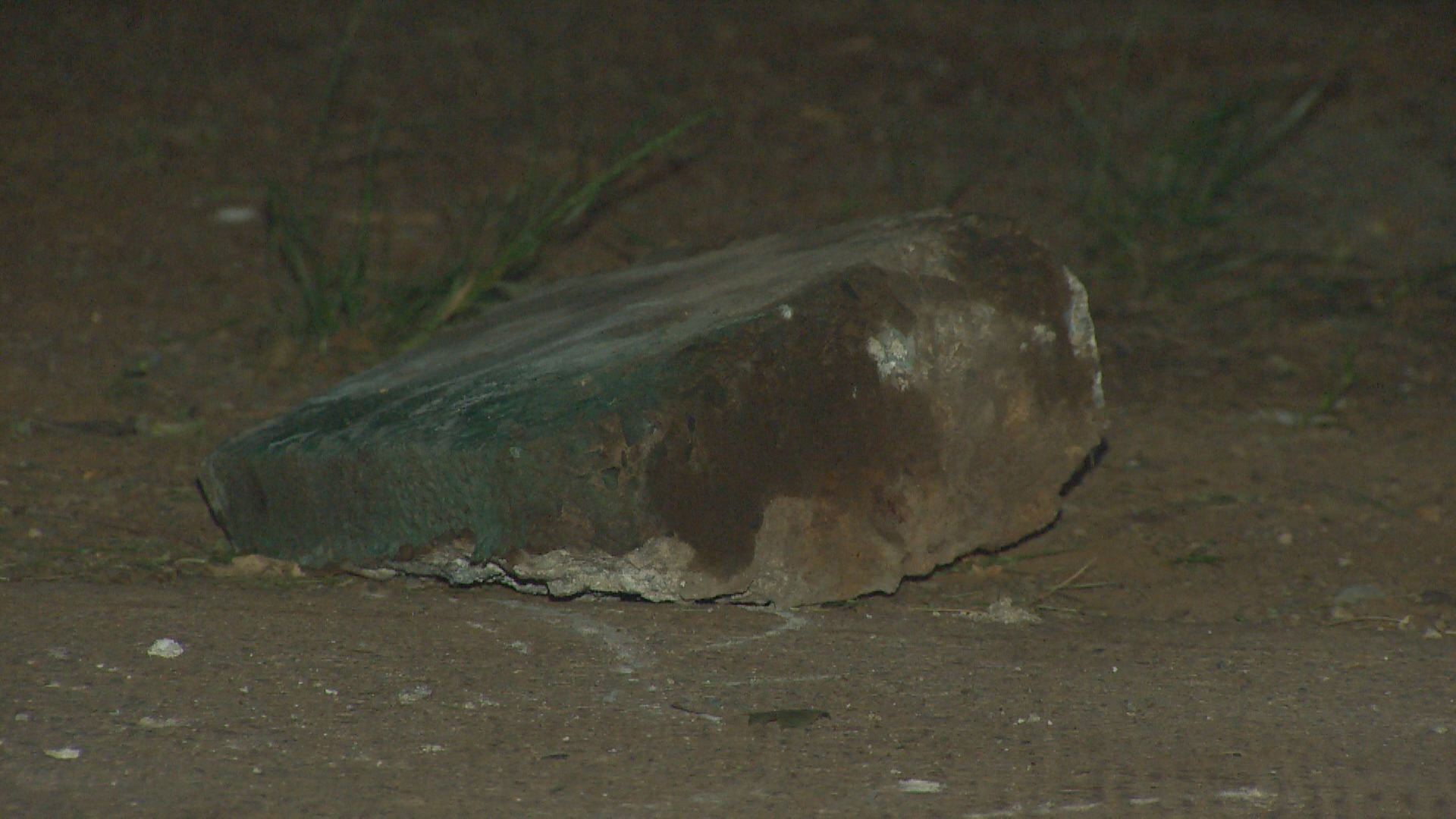 One chunk was about the size of a shoebox; two others were about one-third the size. There were shattered bits spread several feet around, a few about the size of golf balls.