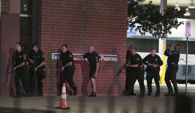 Four of the dead were with the Dallas Police Department, a spokesman said.