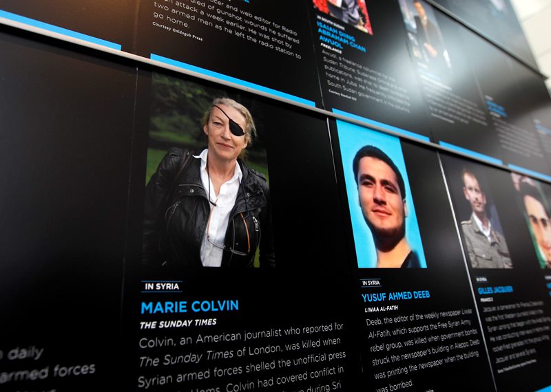 Colvin, 56, a native of New York City, was killed Feb. 22, 2012. Just hours before her death, she filed another report on the Syrian government’s crackdown and its impact on civilians. The attack by Syrian army forces also killed several activists.