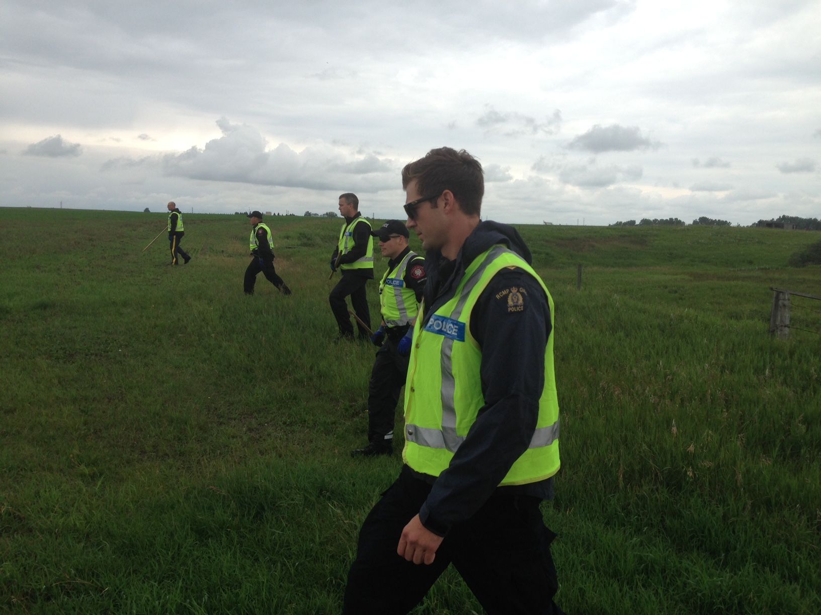 Police set up a staging area at the Delacour community hall, northeast of Chestermere, and fanned out in farmers’ fields in the area, hours after the unidentified man was taken for questioning.