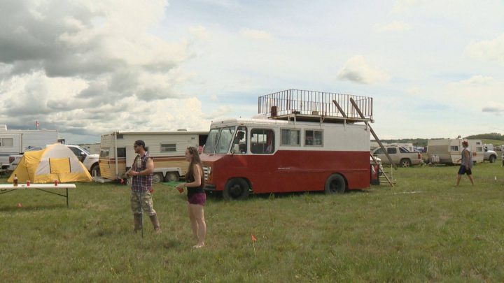 Getting stuck in the mud at Craven is as common as cans of Pilsner, but that wasn’t an issue for Kyle Kotylak of Kelliher, SK. He and his girlfriend rode in Wednesday night, in a school bus outfitted with tractor tires.