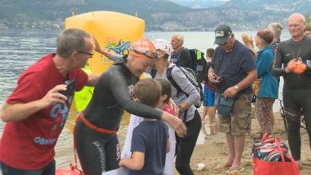 The 2.1 kilometre swim across Okanagan Lake offers a challenge for up-and-coming swimmers as well as veteran swimmers.