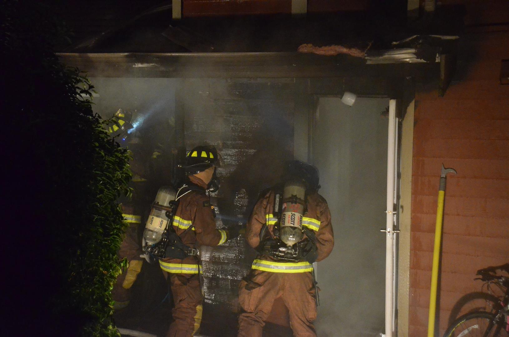 It took crews several hours to douse the flames as the fire travelled up the walls of two units.