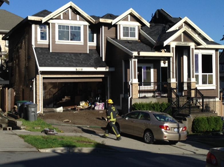 The home did suffer severe damage, especially to the roof. Two other homes also suffered exposure damage.