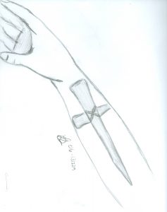 He also had a white-and-black tattoo of a cross on his right forearm, with a chain design looping through it.