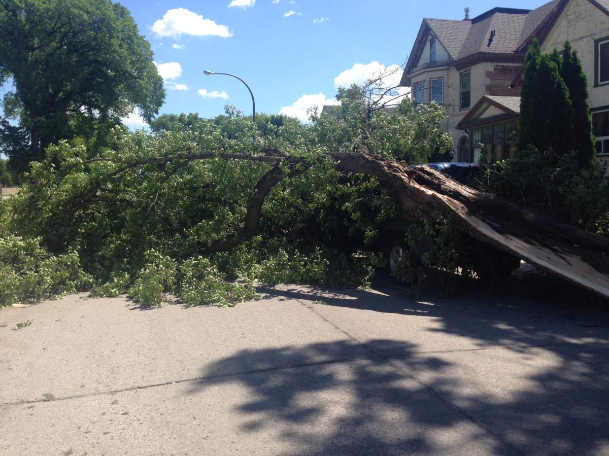 The aftermath resulted in power lines down across the city; 48,000 people without power at the peak across the province, according to Manitoba Hydro; trees on power lines; trees on cars; and even roofs ripped right off their buildings.