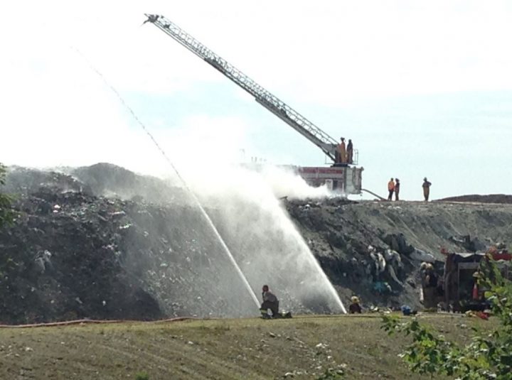 Crews were called to the area around 9 a.m. Sunday after a report of a fire at the landfill.