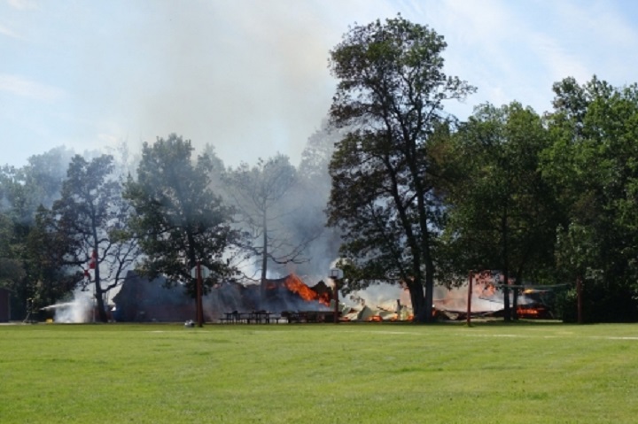 A building at a bible camp near Dauphin, Man, is completely destroyed after a fire tore though it Monday afternoon.