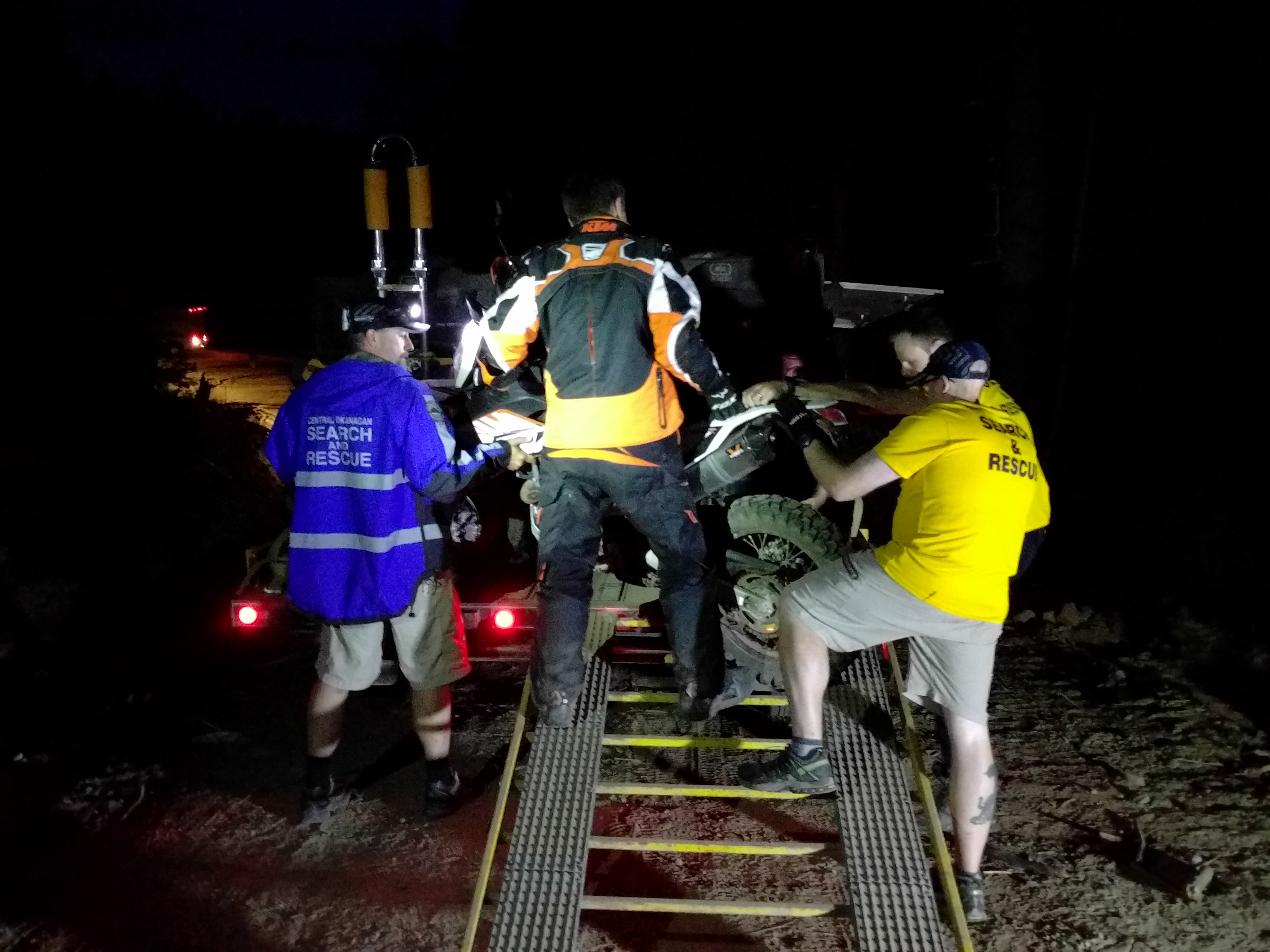 The rider’s bike was put on a trailer and hauled out of the bush without incident.