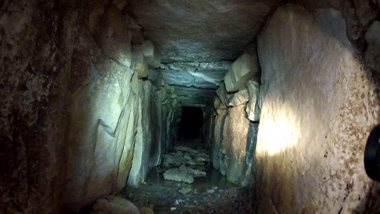 The tunnel, which connects to another, is made of stone and is about two feet (60 centimetres) wide and tall.