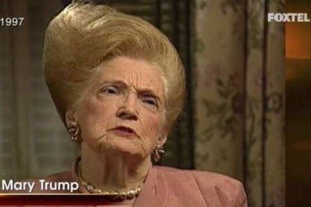 Mary Trump’s hair is swept over to one side and the resemblance to her son is pretty clear.