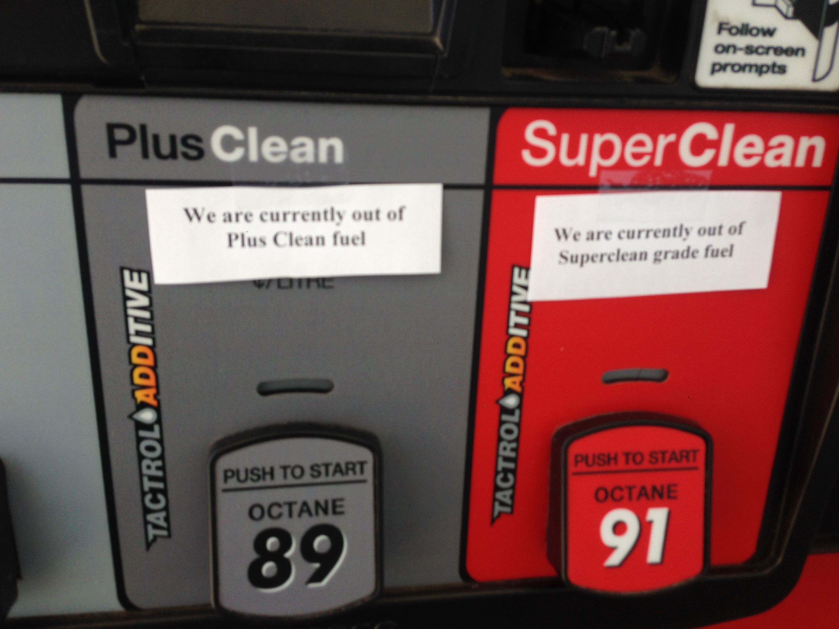 Thursday morning the Petro-Canada on Main Street in West Kelowna did not have premium gas.