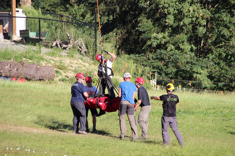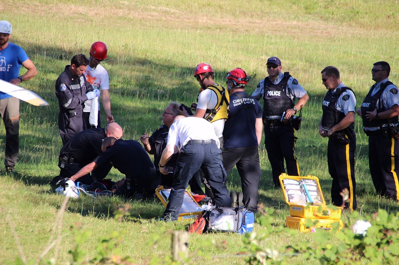 A paraglider has been rushed to hospital after he crashed in Agassiz on Woodside Mountain.