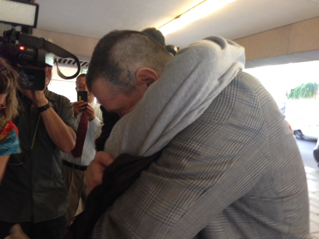 IN PICTURES: John Nuttall and Amanda Korody embraced in the lobby of the courthouse after being released.