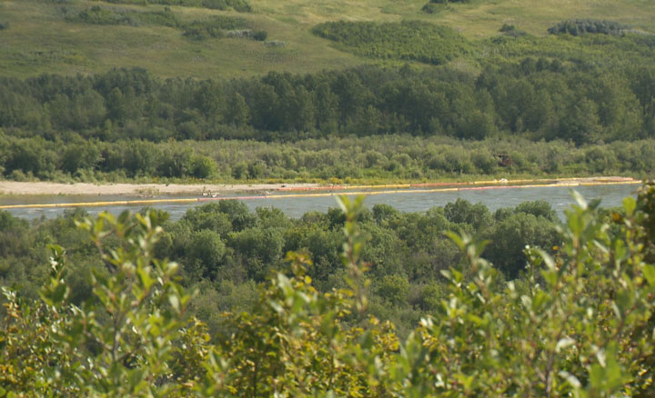 The lines are underground and Pushor said the breach was discovered on the crude pipeline two to three metres underneath the south riverbank. He explained that the oil travelled from the breach about three or four metres within the outer lining of the pipeline, to the point where it came to the surface about 300 metres from the river’s south shore.