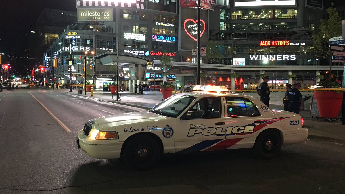 Police were called at 1:20 a.m. after gunshots rang out at Yonge Street and Dundas Street.