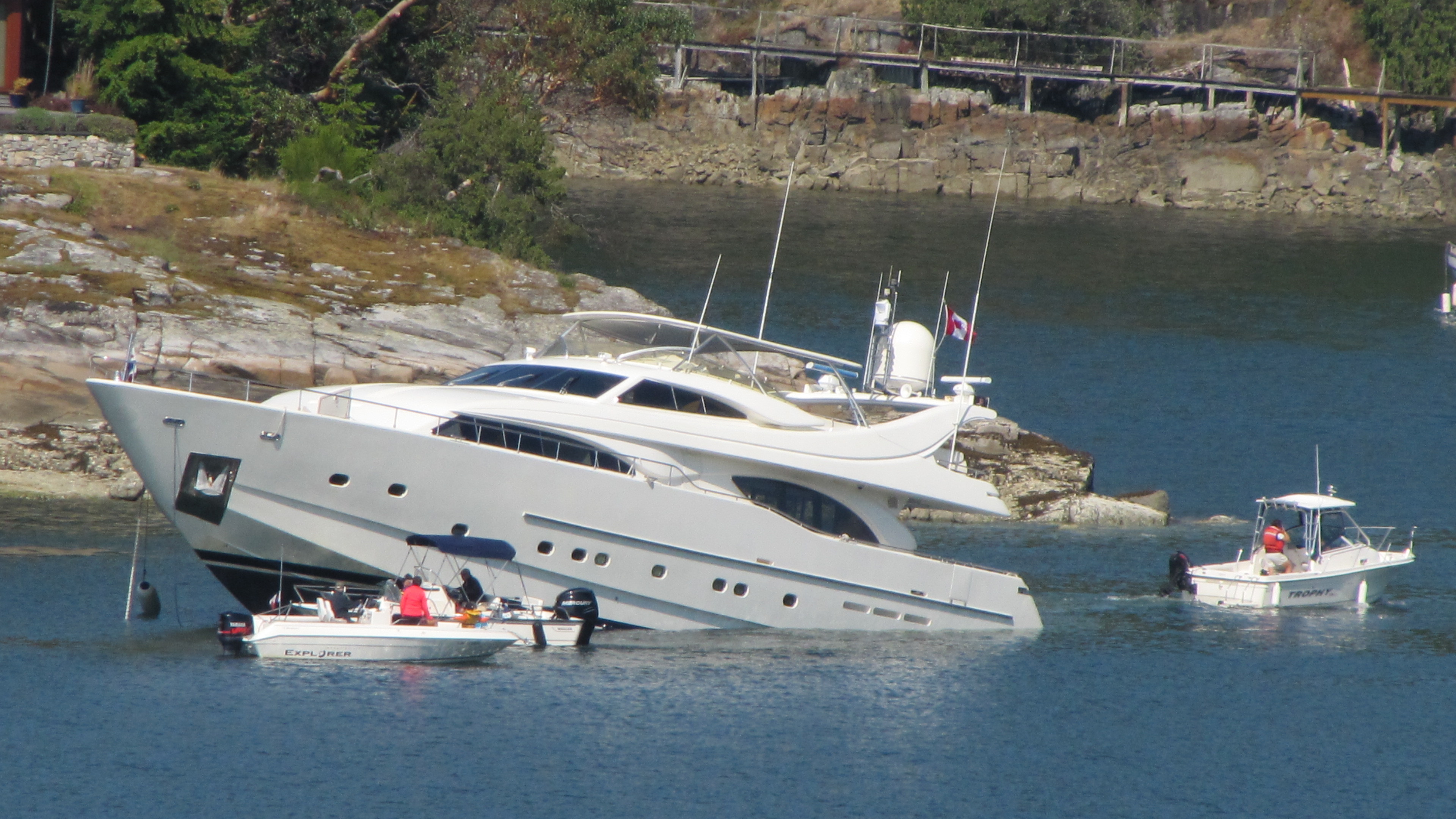 An eyewitness told Global News the yacht was leaving Agamemnon Channel when it hit the rocks.