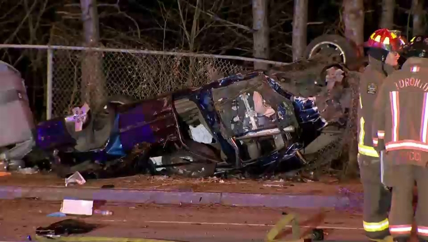 The Acura continued southbound when it then lost control and struck another vehicle near Sheppard Avenue, hitting a signal pole and several trees.