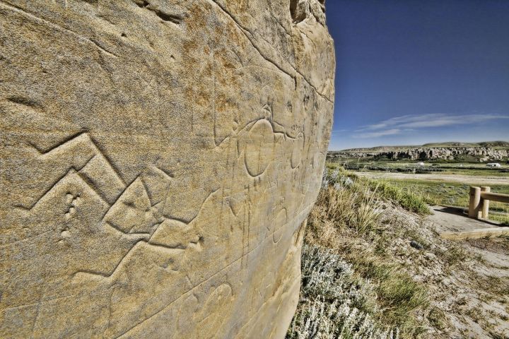 “The spectacular Milk River valley contains the largest concentration of First Nation petroglyphs (rock carvings) and pictographs (rock paintings) on the great plains of North America,” reads a description on the Alberta Parks website.