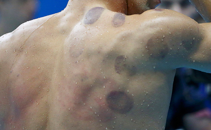 The swimmer’s mysterious purple welts are the result of an ancient Chinese practice known as cupping.