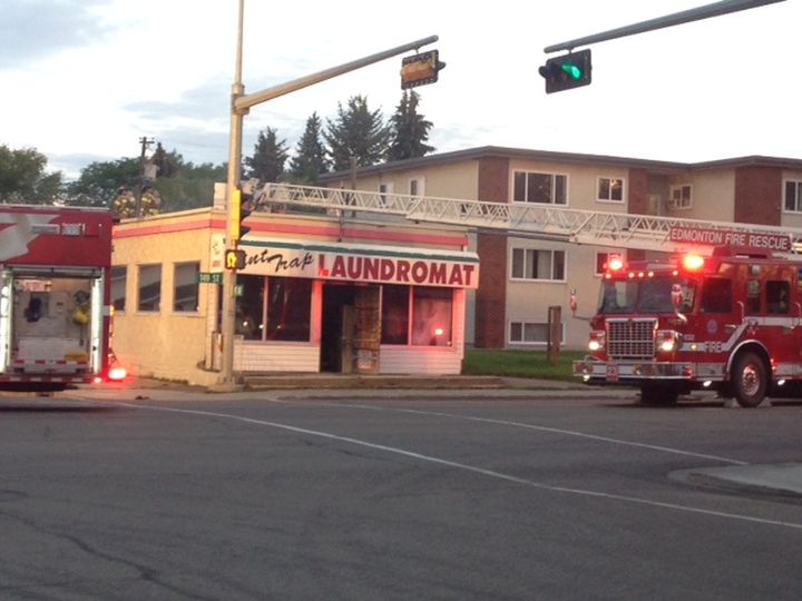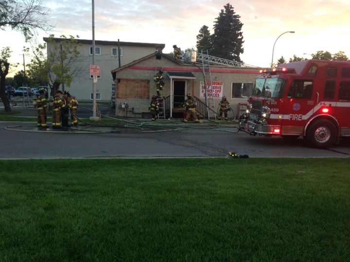Fire crews were called to battle a “stubborn” blaze at a west Edmonton laundromat early Saturday morning.