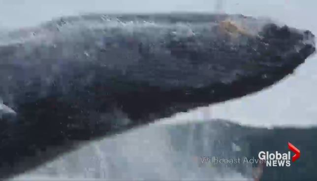 The video shows a whale breaching, not too far from a group of kayakers just off the coast of Penn Islands.