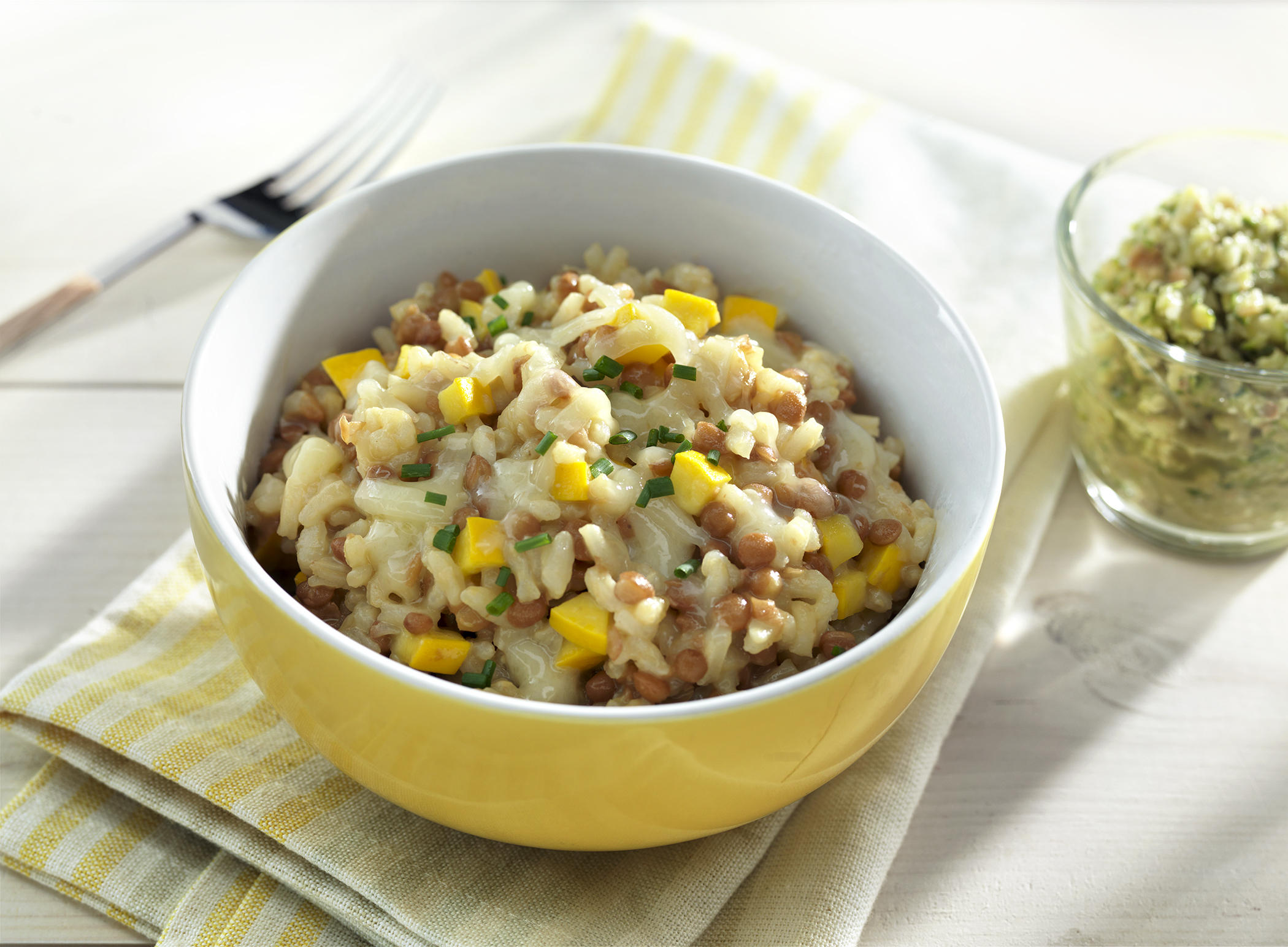 The flavours are oozing in this Risotto, just like the Canadian Aged Cheddar. Delicious as a side dish or main course, it will be a favourite all year long. The zucchini pesto makes a unique addition to this dish.