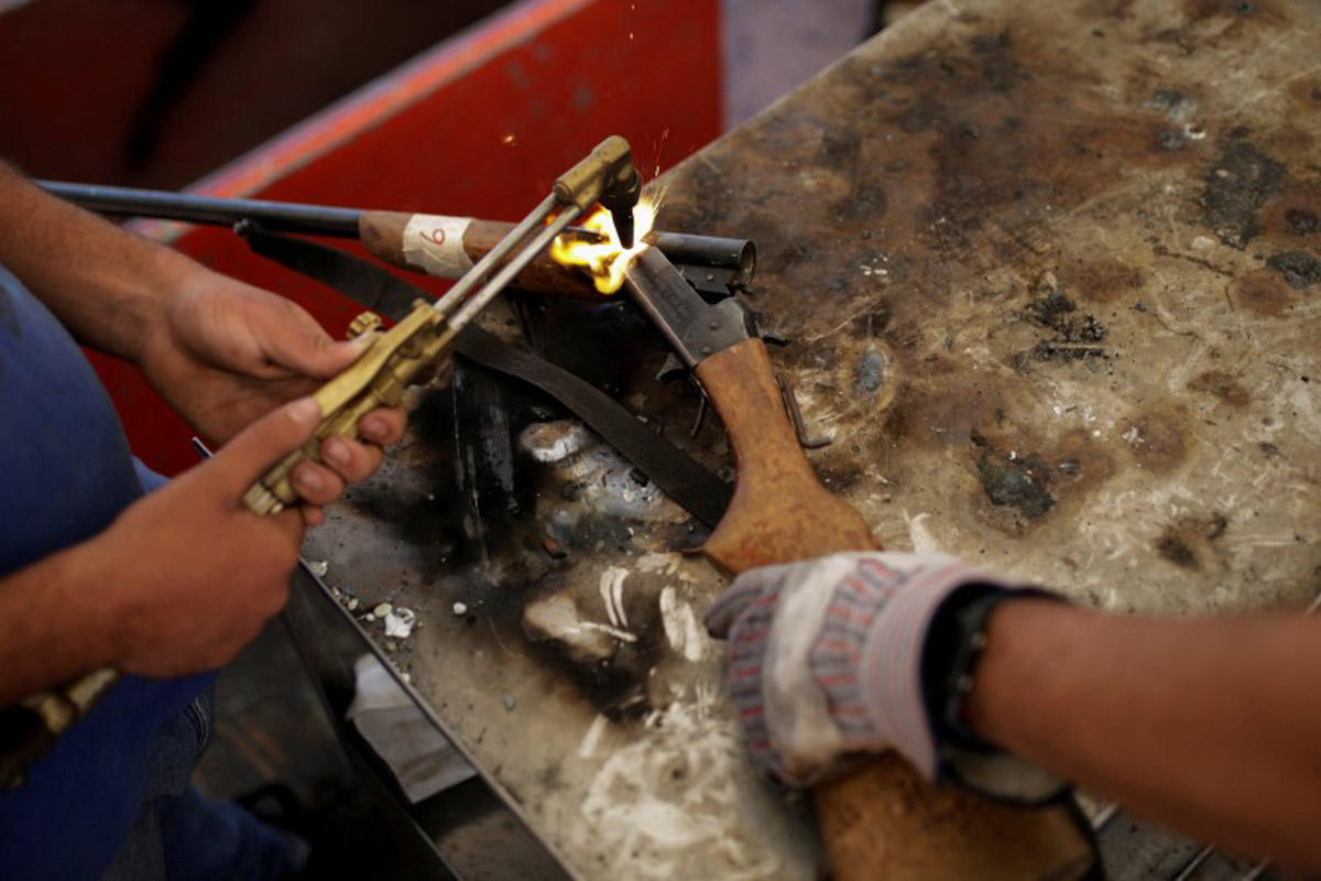 “We are going to bring disarmament and peace,” Reverol told reporters, while police officers drilled and sawed at rusty shotguns, home made pistols and some newer weapons.