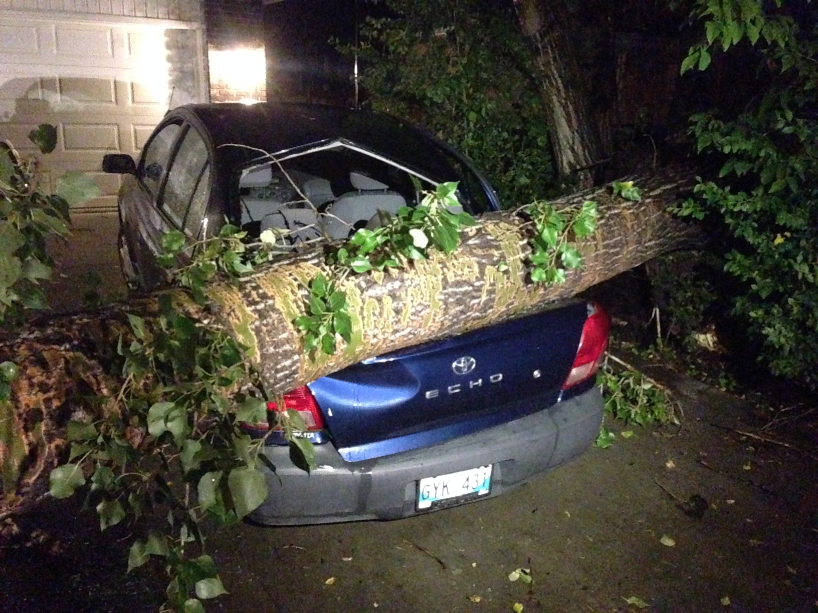 The storm also brought high winds causing some damage, especially to one resident’s vehicle in the River East area.