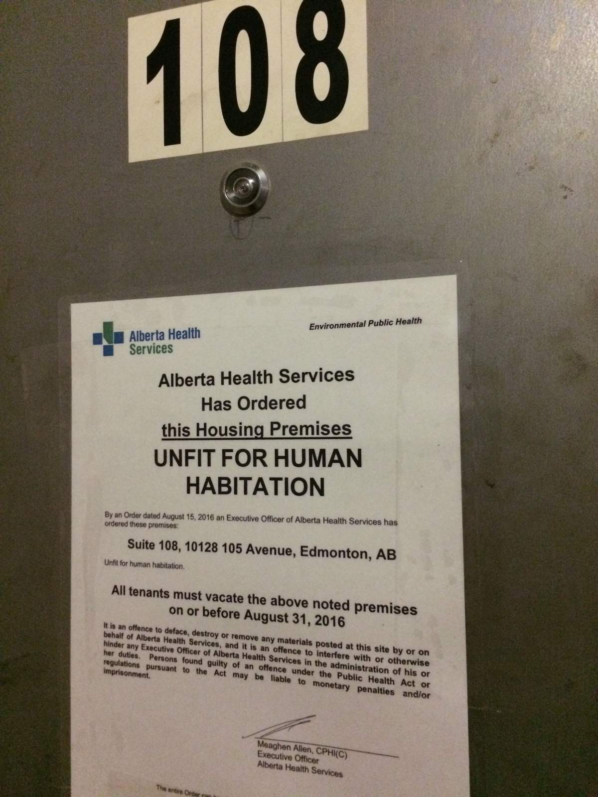 “In this case, building owners have not adequately addressed health concerns, and have not maintained an adequate premises for tenants,” said AHS spokesperson Kerry Williamson.