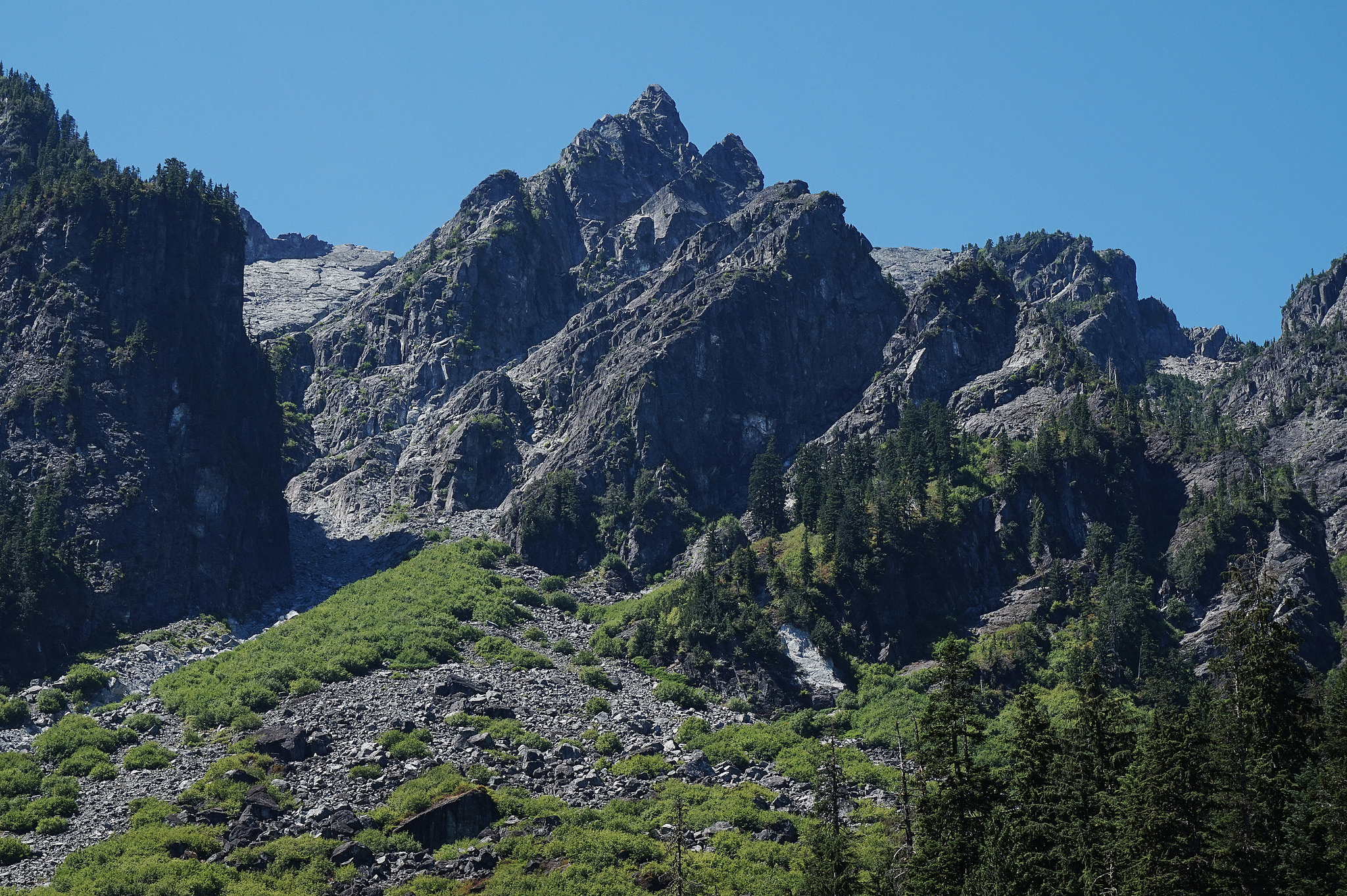 Two field crews are made the trip to the south side of Crown Mountain where two men in their early 20s are located roughly 1,300 meters up the mountain.