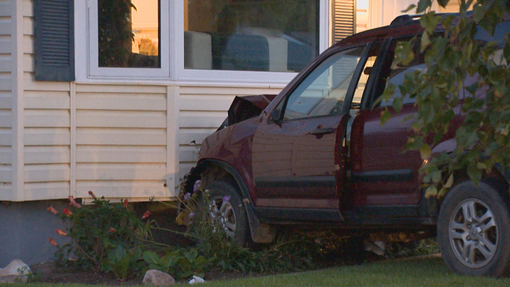 Girl sent to Saskatoon hospital after SUV hits parked car, crashes into house at Dufferin Avenue and Ruth Street. Eric Beck