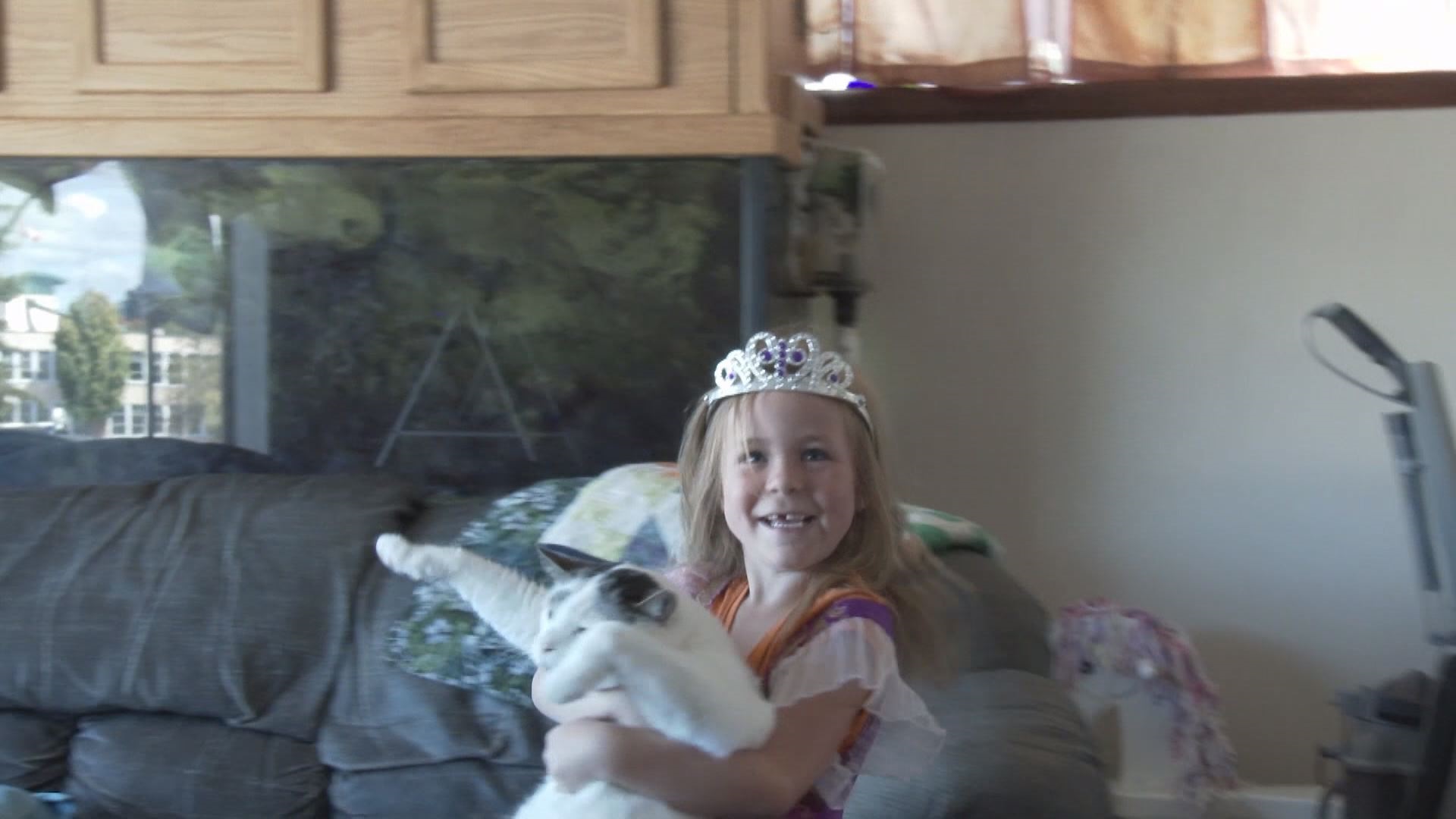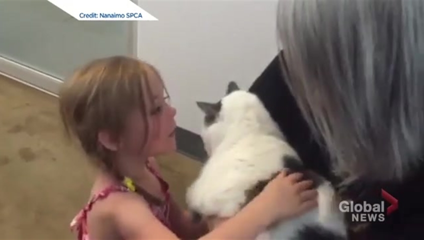 The five-year-old got the surprise of her life when her cat Cursor, who had been missing for three years, was returned to her by the BC SPCA Nanaimo branch.