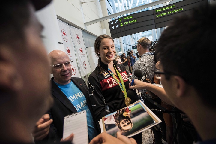 Canadian teenage swimming sensation Penny Oleksiak landed in Toronto on Tuesday to a hero’s welcome following her historic Olympic performance in the pool in Rio and is already embracing her status as an athletic star despite her youth.